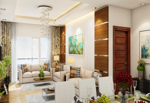 DINING Vitrified Tiles UPVC 3—Track (Fenesta/Equivalent) Modular Sheet & Switches (Wipro/GM/Equivalent) Plastic Emulsion (Asian/Equivalent)  POP Punning As Per Drawing Laminated Flush Shutter With Wooden Frame -